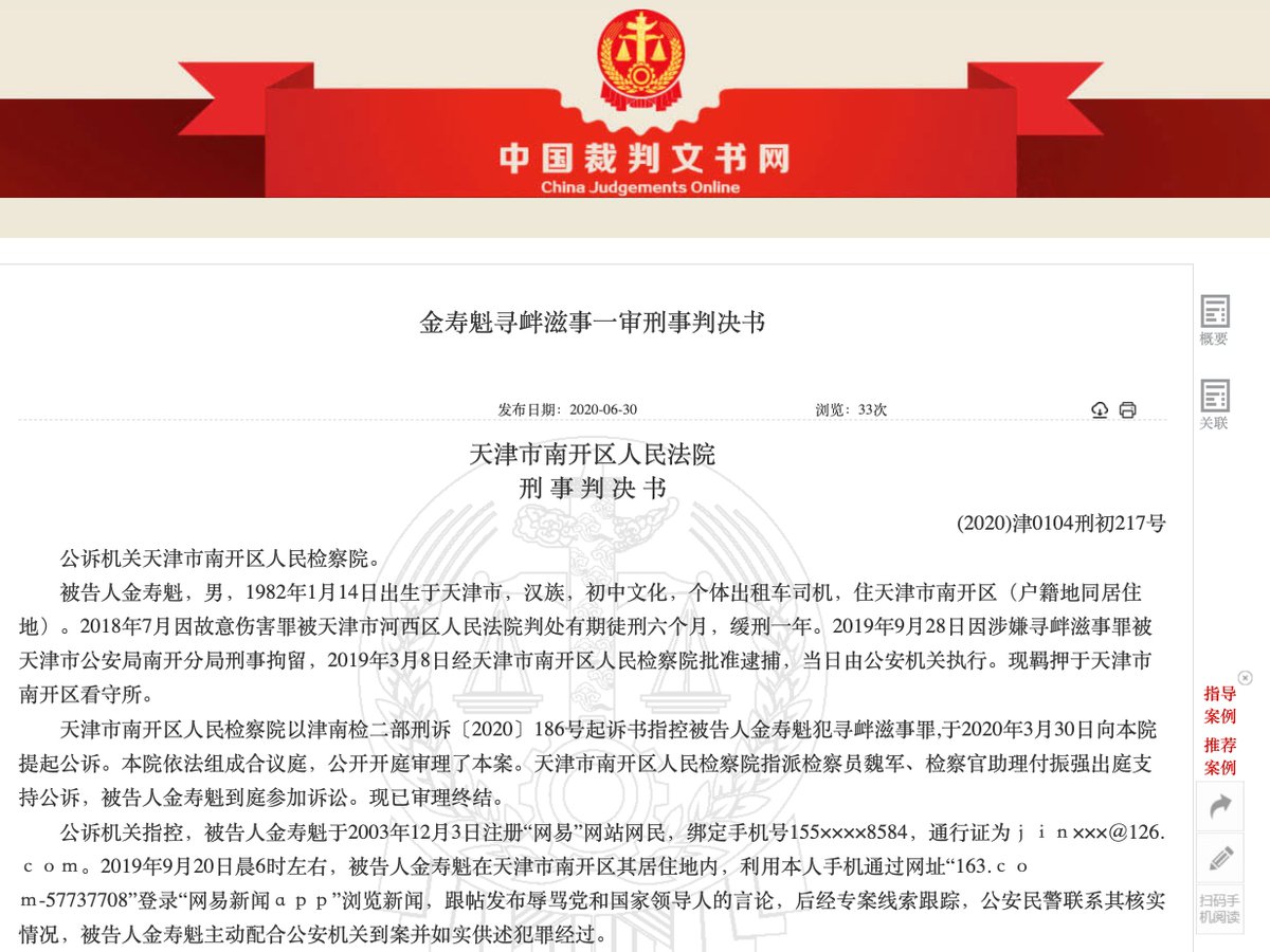 RT @SpeechFreedomCN: “在中国,任何人不可能因为仅仅发表言论就受到处罚或刑罚”。 ——2020.7.2,中国外交部《关于涉华人权问题的各种谬论及事实真相》