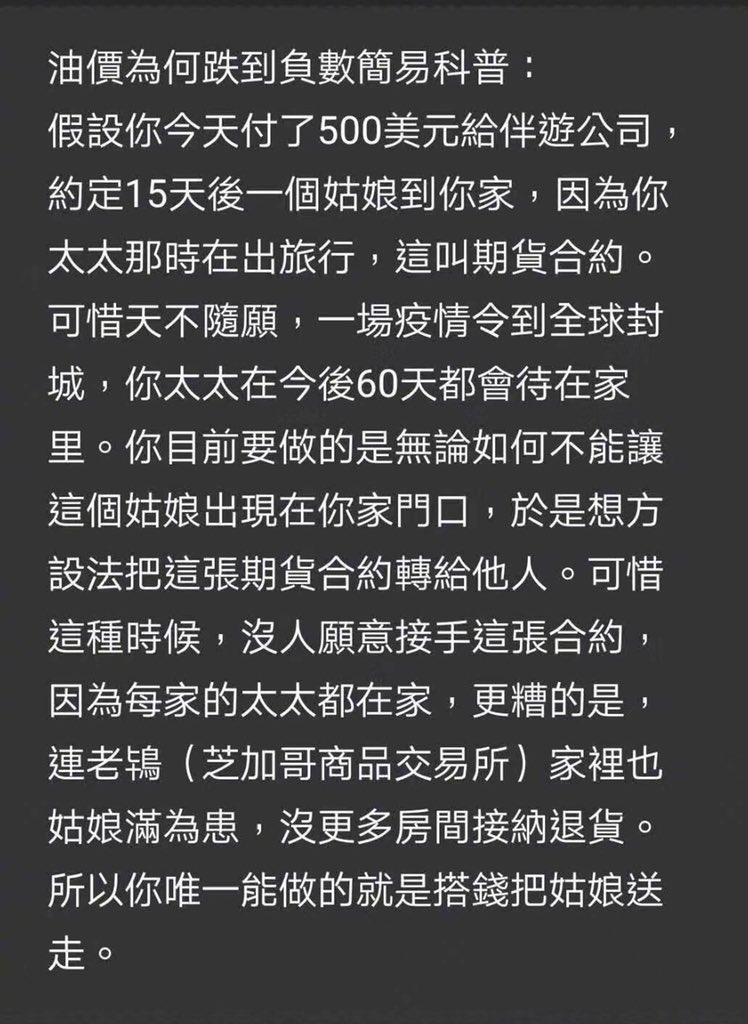 RT @qiaohuanxin: 闲来没事儿,聊两句中行原油宝。这本来是中行跨境炒期货的一个产品,实际上是在国内开赌场,然后到国外对冲,如果没有老鼠仓,正常应该是吸收了国内客户的多空单,把多空单的差额也就是风险敞口在国际市场买卖期货对冲风险。