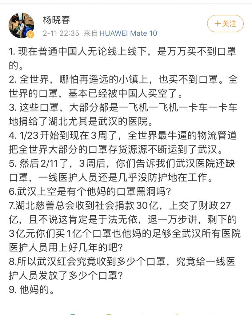 RT @hongliyuyulv: 建议武汉拍一部大型综艺纪录片 口罩去哪儿 https://t.co/Y6qgDjd94s