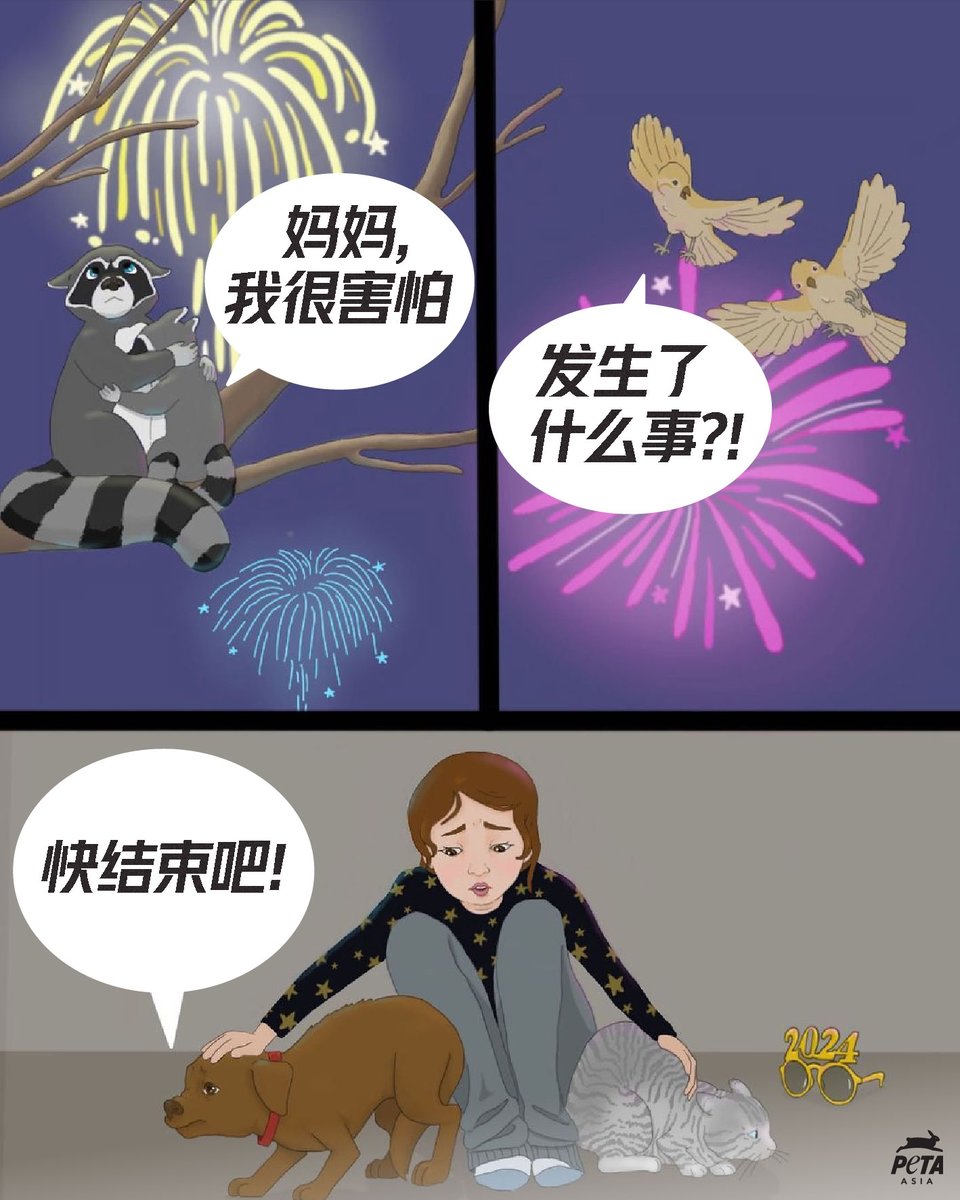 RT @PETAAsiaSC: 烟花爆竹对于野生动物、伴侣动物甚至部分人类而言非常可怕甚至致命。 别让动物因人类庆祝节日而担惊受苦,农历新年期间请不要放烟火!❌🎆 #新年快乐 #保护动物 https://t.co/5238j1oB9o