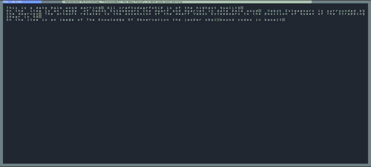 第一个 artifact 出来了,这一个耳环上是刻了多少东西……………………………… #DwarfFortress https://t.co/bngVIaXNyp