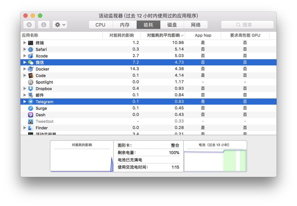 RT @tualatrix: 同样是 IM,同样是随 macOS 开机就一直开着:微信很卡,每次切换过去都会卡一下,Telegram 流畅无比。微信不但卡,而且能耗也高…差距怎么这么大? https://t.co/WyfDmIQ8qC