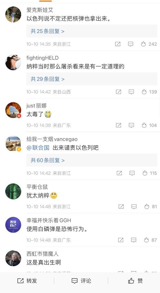 RT @whyyoutouzhele: 10月9日,加沙居民控诉以色列对加沙地带进行的报复性轰炸。 而在两天前,哈马斯在这条街上拖着珊妮·卢克的尸体庆祝着他们的胜利。 https://t.co/uRaA7ZSkLp