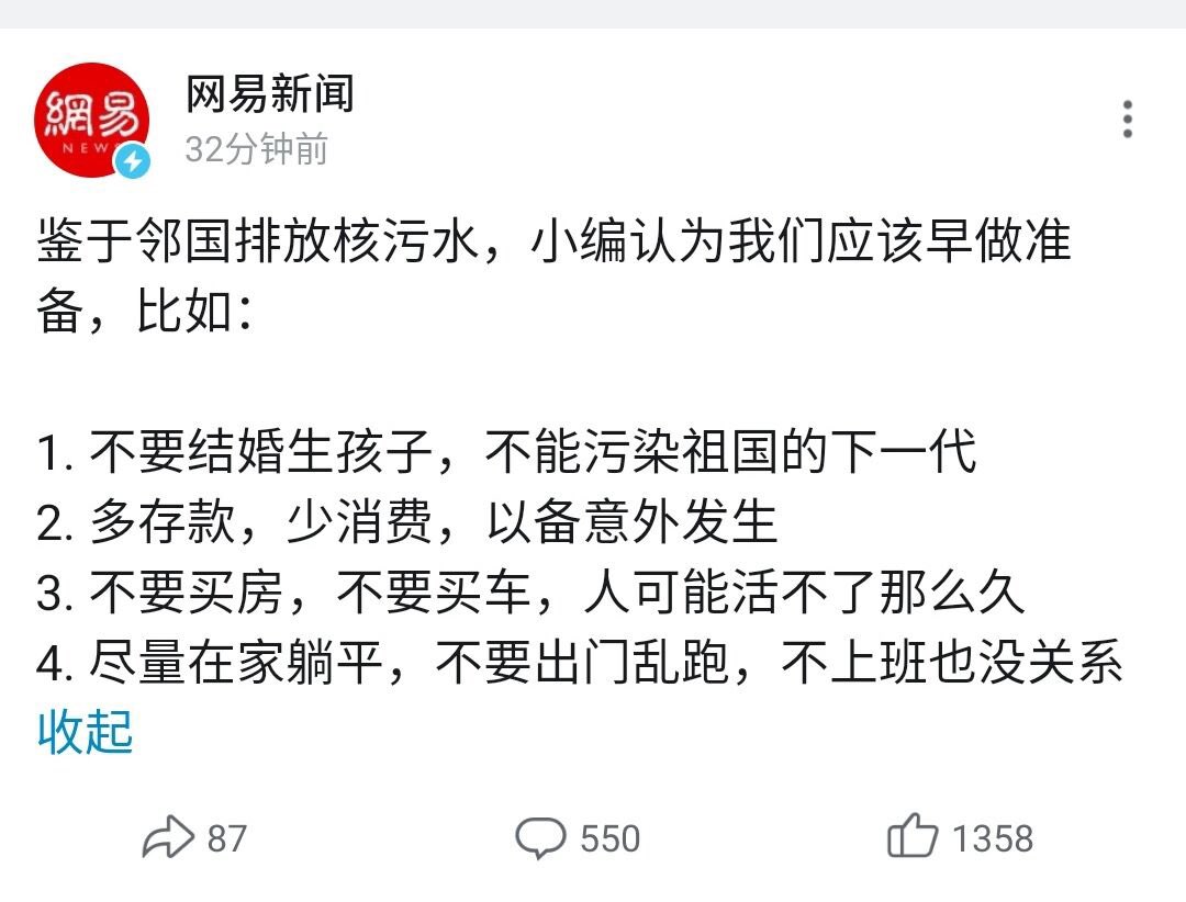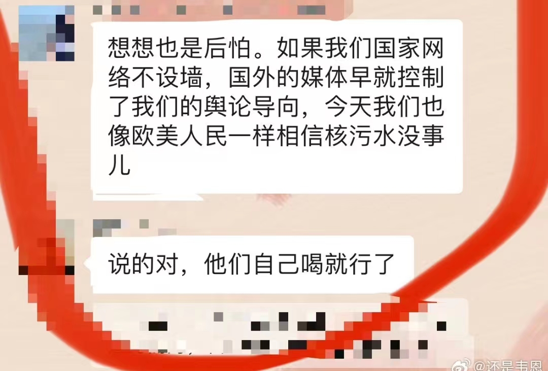 RT @xiaojingcanxue: 梗图:想想也是后怕,如果我们国家网络不设墙,今天我们也会像欧美人民一样相信核污水没事儿。 https://t.co/o5BKxMoMcw