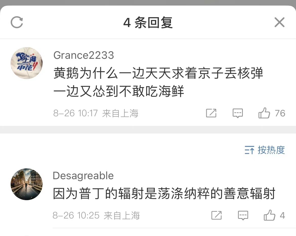 RT @Leontraveller_: 我不是这方面的专家,不过有好吃的日本海鲜我买回来吃不会犹豫。俄国在大海里dump未经处理的核废水那么多年了,也没见大国政府出来吱一声嘛。 https://t.co/bHYNaPuZP6
