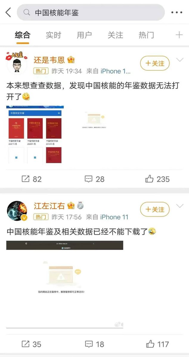 RT @xiaojingcanxue: 日本驻华使馆引用中国核能年鉴数据称,中国几个核电站的排放中辐射总量都远超日本核废水排放。很快,中国核能年鉴被下架。IAEA因为出具支持排放的报告,网站也不能正常打开了(不知道恢复没有)。 https://t.co/XgzXGEX8qQ