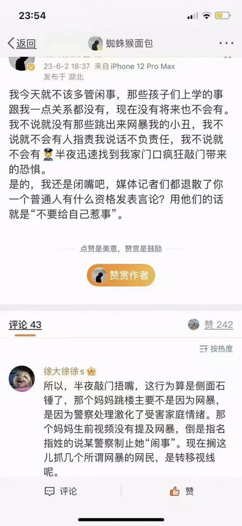 RT @bqB9Ml6aFloKS2F: 跳楼的妈妈不是因为网爆,生前遗留视频指名道姓几位警察粗暴上门令其封口,死了孩子不许哭闹,这才是主因!大家不要被蒙骗,装模作样的抓几个网爆,是在掩盖自己的邪恶! https://t.co/LuvPqvc8nk
