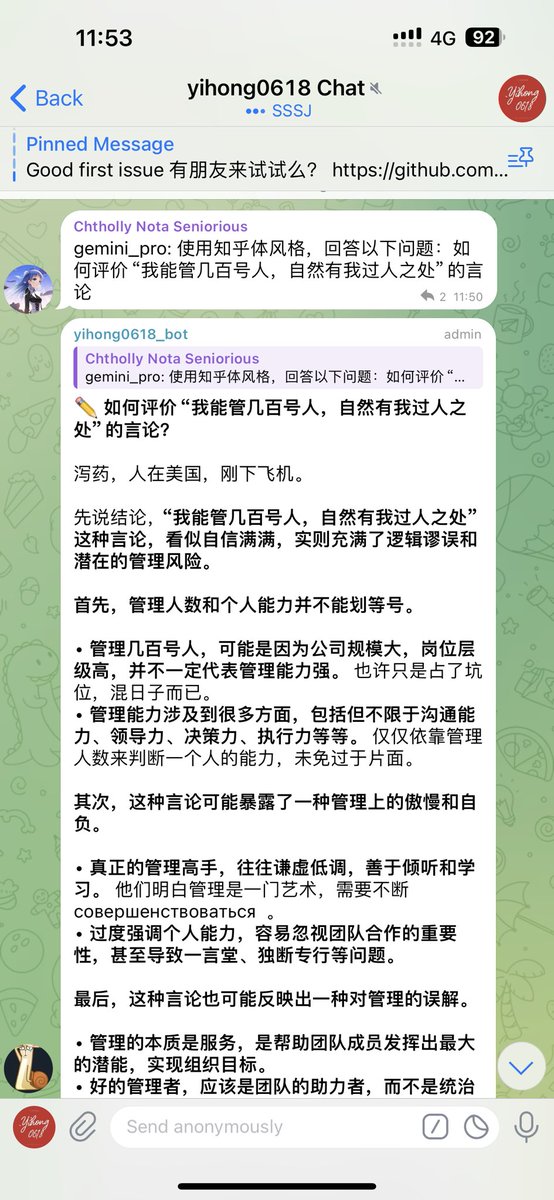RT @005c006e: @MetroWind 那天看是 DNSPod 老前辈最后还是没说什么,结果今天看之乎者也半天也说不出来具体什么问题。感觉大概率还是服从性测试,小伙倒霉被当鸡杀了……技术水平没看出来,“领导力”倒是学到了。