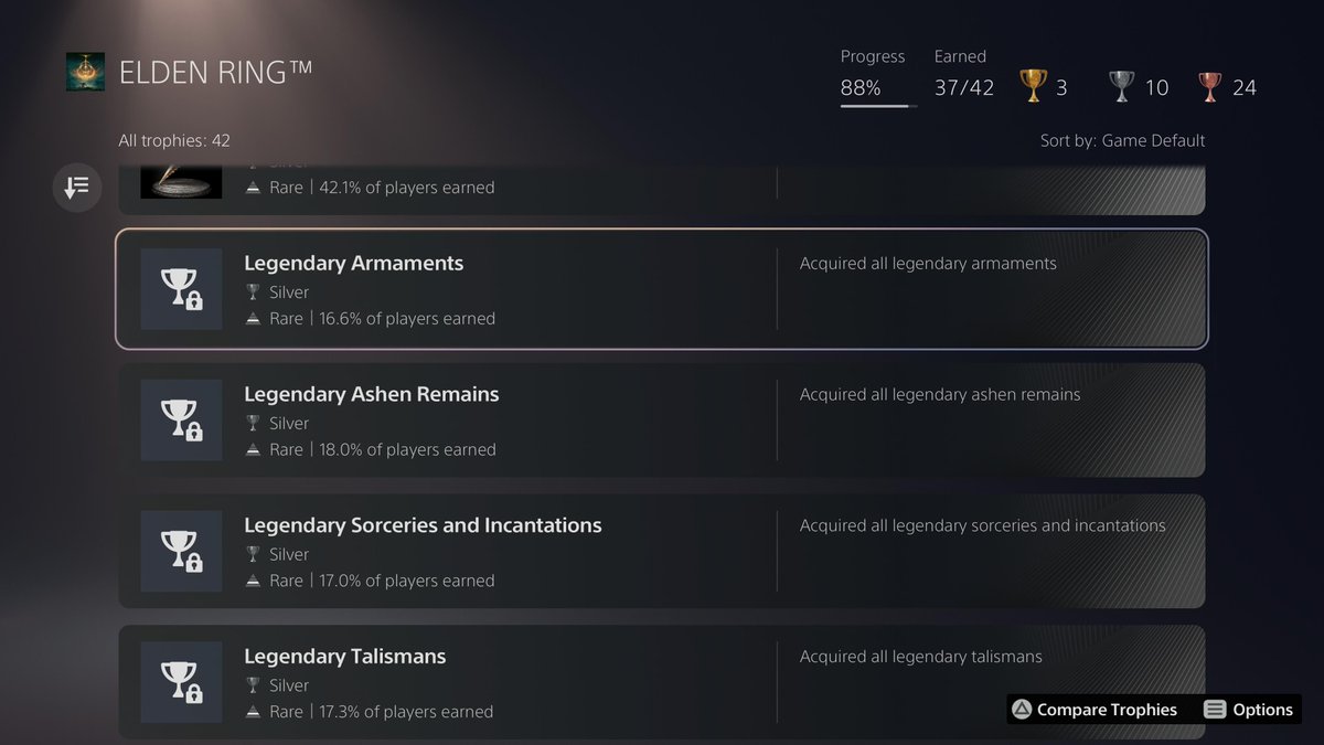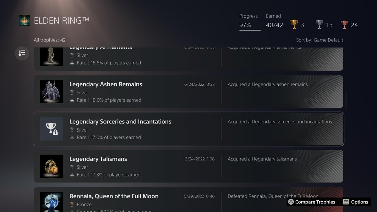 Achievement boss 现在就剩 Ranni 线上的两个了。NG+ 做 Ranni 结局顺便把装备都拿了就可以白金了。