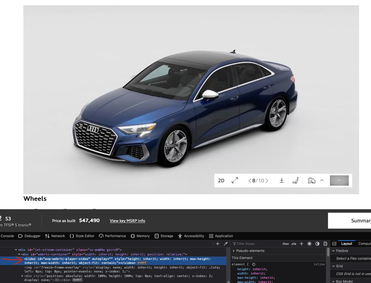 奥迪官网的 3D view,这个不是那种只有几个预渲染图片的假 3D,而是可以无缝旋转的真・3D。我刚看到的时候觉得这个 WebGL 效果真好啊,后来发现这玩意居然是个 video tag⋯⋯ 所以应该是 JavaScript 把角度传给服务器,然后服务器实时渲染以后插入到视频 stream 里⋯⋯有点神奇⋯⋯ https://t.co/5cFR9yzS1F