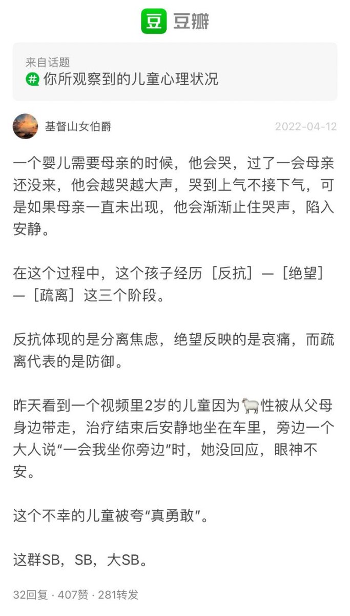 这个 thread 简直了,一个个都装什么高雅⋯⋯为什么就不能像囧乎上一样直接开骂呢⋯⋯