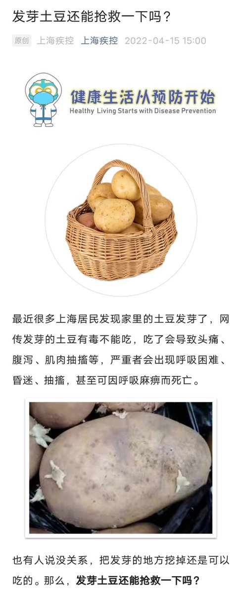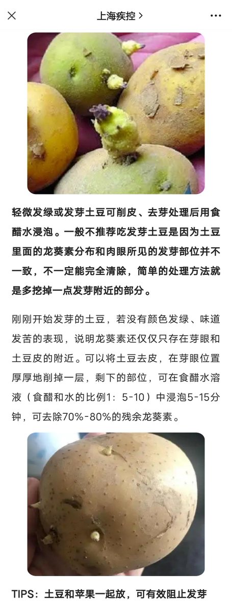 RT @Michael_Yi_: 吗的,龙葵碱中毒中🤮,体温升高,肚子咕咕叫 别再问发芽土豆能吃吗 除了上海能吃,其他地方都不建议吃! https://t.co/6LJouFBn8Q
