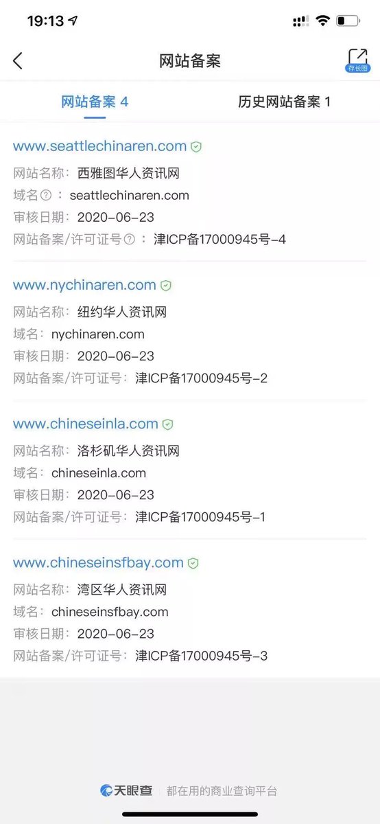 RT @Z73Xo: 这些所谓的海外华人网站,都是同一个注册地👇👇 根据天眼查可知,这些所谓的海外华人网站,其实都是在天津备案的。 https://t.co/YpQbzpHbYd