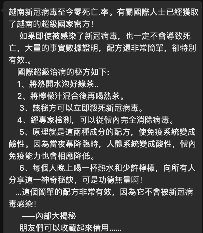 RT @ivenvd: 家族群里的亲戚已经发现了治愈新冠的秘方,分享出来,希望对大家有用。 😟 https://t.co/3UJbKDJJfS