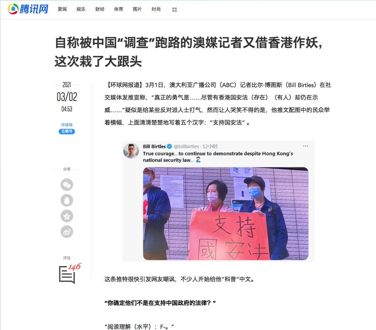 RT @billbirtles: 难以置信,中国官方媒体的英文竟然差到无法理解我原文里的高级黑 🤦♂️🤦♂️🤦♂️